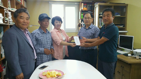 ÀÌÁ¤Èñ À½ºÀ¸éÀåÀº ¡°¾Æ»ê¿Âõ¹ßÀüÇùÀÇȸ¿¡¼ ¸íÀýÀ» ¸Â¾Æ ÈÄ¿ø¹°Ç°À» Àü´ÞÇØ ÁÖ½Ã°í ¶ÇÇÑ Áö¼ÓÀûÀÎ ÈÄ¿øÀ» ¾à¼ÓÇϼ̴µ¥, Á¤¸» Å« °¨»ç¸¦ µå¸°´Ù. À̹ø ÈÄ¿øÀ¸·Î ÀÎÇØ ÈÄ¿ø¹°Ç°À» Àü´Þ¹ÞÀº ºÐµé²²¼ Å©°Ô ¸¸Á·ÇÏ½Ç °Í¡±À̶ó°í °¨»çÀÇ Àλ縦 ÀüÇß´Ù.