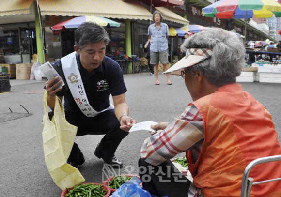 | | ¡è¡è Àü±¹Ã¼Àü ±â³äƼ¼ÅÃ÷¸¦ ¸ÂÃç ÀÔ°í ÀüÅë½ÃÀå¿¡ µé¾î¼± ÀÇ¿øµéÀº ¡®¾Æ»ê½Ã¹Î ¿©·¯ºÐ Èû³»¼¼¿ä¡¯¶ó°í ¾´ ¾î±ú¶ì¸¦ µÎ¸£°í, Áö¿ª°æÁ¦¸¦ »ì¸®±â¿¡ ³ª¼¹´Ù. | ¨Ï ¿Â¾ç½Å¹® | |