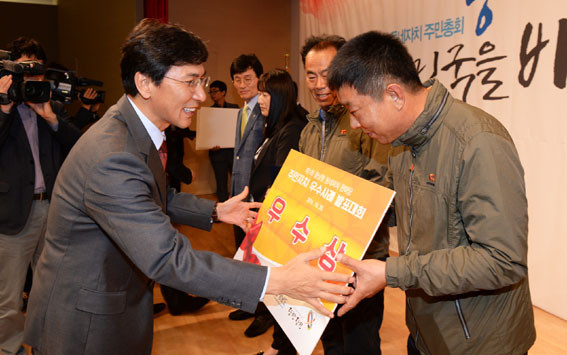 2ºÎ Ãæ³²Çü µ¿³×ÀÚÄ¡ ÁÖ¹ÎÃÑȸ¿¡¼´Â ¡®µ¿³×ÀÚÄ¡! ´ëÇѹα¹À» ¹Ù²Ù´Â Èû¡¯À̶ó´Â ½½·Î°Ç ¾Æ·¡, µµÀÇ ÁÖ¹ÎÀÚÄ¡ Á¤Ã¥ °áÁ¤¿¡ µµ¹ÎÀÌ Á÷Á¢ Âü¿©ÇÏ´Â Åä·ÐÀÇ ÀåÀÌ ÆîÃÄÁ³´Ù.