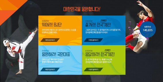 ´©±¸³ª ¾ç üÀü ±â°£ °æ±âÀåÀ» ¹æ¹®, °æ±â Àå¸éÀ» ÃÔ¿µÇØ ¿Ã¸®´Â ¡®¶Ù¾î¶ó BJ´Ü¡¯, ¼±¼öµéÀÇ »ç±â¸¦ ºÏµ¸À» ¼ö ÀÖ´Â ¿Â¶óÀÎ ÀÀ¿øÀ» À§ÇÑ ¡®ÀÀ¿øÇ϶ó! ±¹¹Î´ëÇ¥¡¯ µî ´Ù¾çÇÑ À̺¥Æ®¸¦ ¸¶·ÃÇß´Ù.