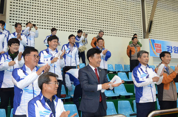 ¿À¾È¿µ ÀÇÀåÀ» ºñ·ÔÇÑ ½ÃÀÇ¿øµéÀº °æ±âÀåÀ» ½Ã¹Îµé°ú ÇÔ²² ¿¶í ÀÀ¿øÀ» ÆîÃÆ´Ù.