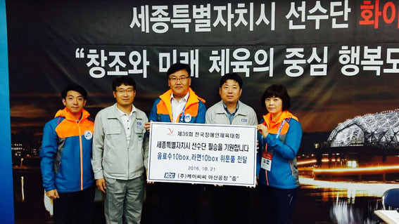 ÇÑÆí, ¾Æ»ê½Ã ±â¾÷ÀεéÀº Áö³ 10¿ù 13ÀÏ¿¡ Æó¸·ÇÑ Á¦97ȸ Àü±¹Ã¼À°´ëȸ¿¡¼µµ Âü°¡ÇÑ ½Ã¡¤µµ ¼±¼ö´Ü¿¡°Ôµµ 30¿©°³ ±â¾÷ü¿¡¼ 4õ¿©¸¸ ¿ø »ó´çÀÇ À§¹®Ç°À» Àü´ÞÇÏ°í °Ý·ÁÇß´Ù.