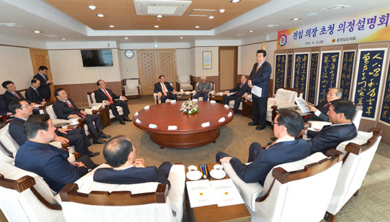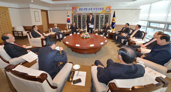 À̳¯ À±¼®¿ì ÀÇÀåÀº ÀüÀÓ ÀÇÀå¿¡°Ô Á¦10´ë µµÀÇȸ ÀÇÁ¤ ÇöȲÀ» ¼³¸íÇϰí, Çö¾È ÇØ°áÀ» À§ÇÑ Á¤Ã¥ ¹æ¾ÈÀ» ÇÔ²² ¸ð»öÇß´Ù.