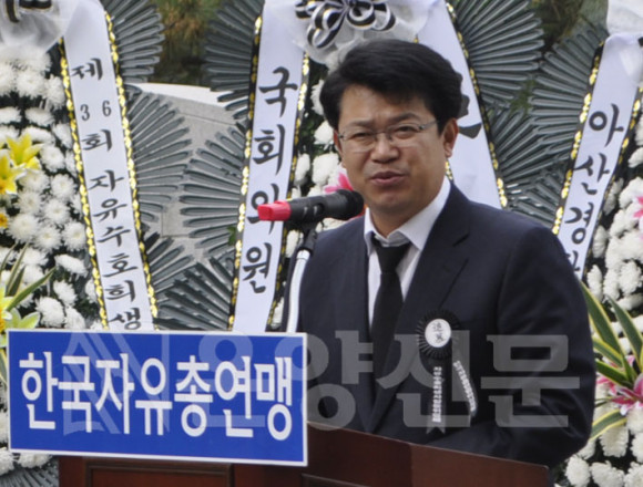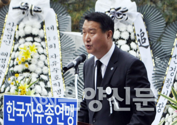 ±èÀ±Å Çѱ¹ÀÚÀ¯ÃÑ¿¬¸Í ¾Æ»êÁöȸÀåÀº ¡°¿ì¸®³ª¶ó¸¦ ¼öÈ£Çϱâ À§ÇØ ¸ñ¼ûÀ» ¹ÙÄ£ È£±¹¿µ·ÉÀÇ ¼þ°íÇÑ Èñ»ýÀ» ±â¸®¸ç, ¿ì¸®°¡ ´©¸®°í ÀÖ´Â ÀÌ ÀÚÀ¯¿Í ÆòÈ´Â ¼ø±¹¼±¿ÀÌ ¸¸µç ¼ÒÁßÇÑ °á½ÇÀÓÀ» ÀØÁö ¸»¾Æ¾ß ÇÒ °ÍÀÌ´Ù¡±°í ¸»Çß´Ù.