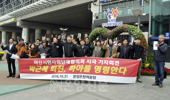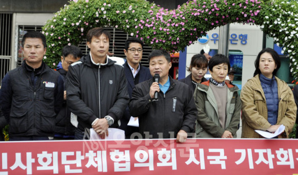 10¿ù 31ÀÏ 11½Ã ¿Â¾ç¿Âõ¿ª ±¤Àå¿¡¼ ½Ã¹Î¿¬´ë ÃÖ¸¸Á¤ ´ëÇ¥¿Í ¼»ó¿í, ¹ÎÁÖ³ëÃÑ ¾Æ»êÁöºÎ ¹®¿ë¹Î, Áö¼Ó°¡´ÉÇùÀÇȸ ¹Ú±â³², ¾Æ»ê YMCA Ã¥ÀÓ°£»ç ¹ÚÁø¿ë, Ãæ³²³ó¹Îȸ Àå¸íÁø ´ëÇ¥´Â Áö³ÁÖ ³»³» Áö¼ÓµÈ ±¹Á¤¹®¶õ »ç°Ç¿¡ ´ëÇØ ¾Æ»ê½Ã¹Î ½Ã±¹¼±¾ð ±âÀÚȸ°ßÀ» °¡Á³´Ù.