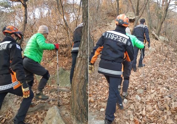 À̵éÀº ¿µÀλêÈ޾縲 °ü°èÀÚ¿Í Çù·ÂÇØ »ê¾ÇÀ§Ä¡Ç¥ÁöÆÇÀ» ÀÌ¿ë, ½Å°íÀÚÀÇ À§Ä¡¸¦ ÆÄ¾ÇÇÑ ÈÄ »ç¹æ´ï Áß°£ÁöÁ¡¿¡¼ A¾¾¸¦ ¹ß°ßÇØ ¿¬ÈºÀ ½Ã·Ã°ú¿µ±¤ÀÇ Å¾À¸·Î ¾È³»ÇÑ ÈÄ ±¸±ÞÂ÷¸¦ ÀÌ¿ëÇØ ¾ÈÀüÇÏ°Ô ±Í°¡ Á¶Ä¡Çß´Ù.