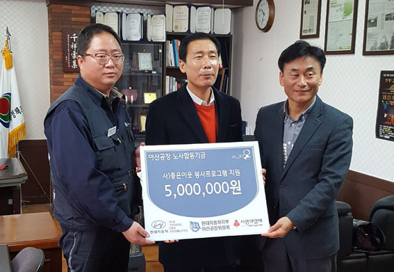 ÇÑÆí À̹ø ÈÄ¿ø±Ý Àü´ÞÀº Çö´ëÀÚµ¿Â÷ ¾Æ»ê°øÀå°ú ³²´Ù¸¥ Àο¬ÀÌ ÀÖ´Â ¾Æ»ê½ÃÀÇȸ ÀÌ¿µÇØ ÀÇ¿øÀÇ Àû±ØÀûÀÎ Áö¿øÀÌ ÀÖ¾ú´Ù. ÀÌ¿µÇØ ÀÇ¿øÀº ¡°½Ã¹ÎÀÇ º¹ÁöÁõÁø ¹× ³ª´® ¹®È Á¤ÂøÀ» À§ÇÑ Çö´ëÀÚµ¿Â÷ ¾Æ»ê°øÀå ³ë»çÇÕµ¿ÀÇ Áö¼ÓÀûÀÎ ÈÄ¿ø¿¡ ´ëÇØ Áø½ÉÀ¸·Î °¨»çµå¸®¸ç, ¾ÕÀ¸·Îµµ ¸¹Àº °ü½É°ú Áö¿øÀ» ºÎʵ台´Ù.¡±°í ÀüÇß´Ù.