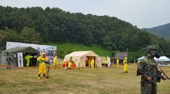 ¸ðÀÇÈÆ·ÃÀº õ¾È ±¹°¡¹Î¹æÀ§Àç³¾ÈÀü±³À°¿ø¿¡¼ µµ¿Í Áúº´°ü¸®º»ºÎ, º¸°Ç¼Ò, °æÂû ¹× ¼Ò¹æ, ±ººÎ´ë µî 12°³ ±â°ü 500¿©¸íÀÌ Âü°¡ÇÑ °¡¿îµ¥, źÀú±Õ Å×·¯ ¹ß»ý »óȲÀ» °¡Á¤ÇØ ½Ç½ÃÇß´Ù.