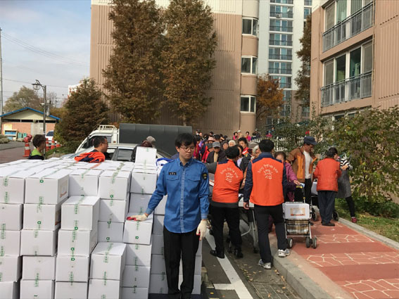 Áֹμ¾ÅÍ¿Í Çù·ÂÇØ ÇູŰ¿òÃßÁø´ÜÀº À¾³»ÁÖ°ø¾ÆÆÄÆ®¿¡ °ÅÁÖÇÏ´Â °Åµ¿ºÒÆí ¾î¸£½Å, Àå¾ÖÀΰ¡±¸ µî 380¿©¸íÀÇ ´ë»óÀÚ°¡ Áֹμ¾Å͸¦ Á÷Á¢ ¹æ¹®ÇØ ¹Þ¾Æ°¡±â¿¡´Â ¾î·Æ°í À̵¿ Áß »ç°í À§Ç輺À» °¨¾ÈÇØ °¢ ¾ÆÆÄÆ®¸¦ Á÷Á¢¹æ¹®, ºÀ»çÀÚµé°ú ÇÔ²² ±èÀåÀ» Àü´ÞÇÏ´Â ºÀ»çȰµ¿À» ½Ç½ÃÇÔÀ¸·Î ÁֹεéÀÇ È£ÀÀÀ» ¾ò¾ú´Ù.