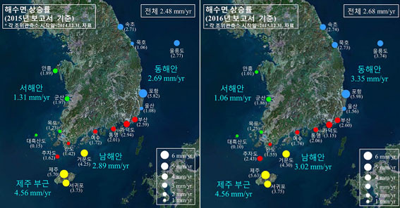 ±¹¸³ÇؾçÁ¶»ç¿øÀº 18°³ Á¶À§°üÃø¼Ò¿¡¼ Àå±â °üÃøÇÑ ÀڷḦ ¹ÙÅÁÀ¸·Î ÇöÀç±îÁöÀÇ ÇØ¼ö¸é º¯µ¿·üÀ» »êÁ¤ÇÏ¿© 2009³âºÎÅÍ ¸Å³â ¹ßÇ¥Çϰí ÀÖÀ¸¸ç, ¿ÃÇØ °»½ÅÇÏ¿© »êÁ¤ÇÑ ÇØ¼ö¸é Æò±Õ »ó½Â·üÀº 2.68mm/yr·Î Àü³â(2.48mm/yr)¿¡ ºñÇØ ¼ÒÆø Áõ°¡ Ãß¼¼¸¦ º¸¿´´Ù.