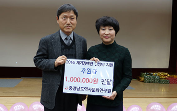 ÇÑÆí, ¿¬±¸¿ø¿¡¼´Â Áö³ 2007³âºÎÅÍ º¹Áö°ü°ú ÈÄ¿øÀ» ¸Î°í Á÷¿øµéÀÌ ÀÚ¹ßÀûÀ¸·Î Âü¿©ÇÏ¿© ¸Å¿ù ²ÙÁØÇÏ°Ô ±âºÎ±ÝÀ» Àü´ÞÇϰí ÀÖÀ¸¸ç, ¿ÃÇØ 1¿ù¿¡µµ ¡®°øÁÖ ÃæÇö¼¿ø Ȱ¿ë»ç¾÷¡¯ÀÌ Àü±¹ ¿ì¼ö»ç¾÷À¸·Î ¼±Á¤µÅ ¼ö»óÇÑ Æ÷»ó±Ý Àü¾×À» º¹Áö°ü¿¡ ¼º±ÝÀ¸·Î Àü´ÞÇÏ´Â µî Áö¼ÓÀûÀ¸·Î ÀÌ¿ô»ç¶û Á¤½ÅÀ» À̾°í ÀÖ¾î ±Í°¨ÀÌ µÇ°í ÀÖ´Ù.