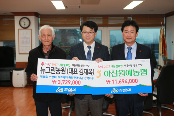 | | ¨Ï ¿Â¾ç½Å¹® | | ¾Æ»ê¿ø¿¹³ó¾÷Çùµ¿Á¶ÇÕ(Á¶ÇÕÀå ±¸º»±Ç)°ú ´º±×¸°³ó¿ø(´ëÇ¥ ±èÀç¿Á)Àº 12¿ù 26ÀÏ ¾Æ»ê½Ã(½ÃÀå º¹±â¿Õ)¿¡ ¡®Èñ¸Á2017 ³ª´®Ä·ÆäÀΡ¯ÀÌ¿ô»ç¶û ¸ð±Ý¿¡ 1õ542¸¸ 3õ¿øÀ» Àü´ÞÇß´Ù.
