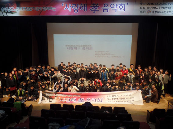 À̳¯ À½¾Çȸ¿¡¼´Â ³ëÀκ¸È£»ç¾÷À» ¾Ë¸®°í ÇлýµéÀÇ È¿ ¹®È È®»ê¿¡ ±â¿©ÇϰíÀÚ Ãæ³²Áö¿ª Çлý 200¿©¸íÀÌ Âü¿©ÇÑ °¡¿îµ¥ ³ëÀÎÇдë UCC »ó¿µ, ³ëÀÎÇд뿹¹æ¿¡ Àû±ØÀûÀÎ °ü½ÉÀ» ´ÙÁüÇÏ´Â ³ëÀÎÇд뿹¹æ ¼±¼½Ä°ú »ç¶ûÇØüø À½¾Çȸ¼øÀ¸·Î ÁøÇàµÆ´Ù.