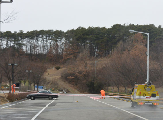 ÈÆ·Ã »óȲÀ¸·Î´Â ¾Æ»ê½Ã ¸ðÁ¾µ¿ dz±âÁö±¸ µµ·Î»ó¿¡¼ À̵¿ÅÊÅ©·Î¸® 1´ë°¡ Àüº¹µÇ¸é¼ °ú»êȼö¼Ò°¡ ´©ÃâµÇ°í, ¿îÀüÀÚ 1¸íÀÌ Â÷·®¿¡ °¤ÇôÀÖ´Â »óȲÀ» °¡Á¤ÇØ ÈÆ·ÃÀÌ ÁøÇàµÆ´Ù.