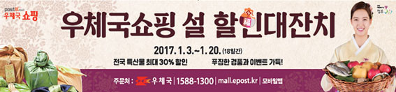 | | ¨Ï ¿Â¾ç½Å¹® | | ¿ìÁ¤»ç¾÷º»ºÎ ¾Æ»ê¿ìü±¹(±¹Àå Á¶¼º¿í)Àº ¿À´Â 1¿ù 20ÀϱîÁö ¿ìü±¹¼îÇÎ ¼³¸ÂÀÌ ÇÒÀδëÀÜÄ¡¸¦ ¿°í ÆÈµµÆ¯»ê¹°À» ÃÖ´ë 30%±îÁö ÇÒÀÎÆÇ¸Å Çϰí ÀÖ´Ù.