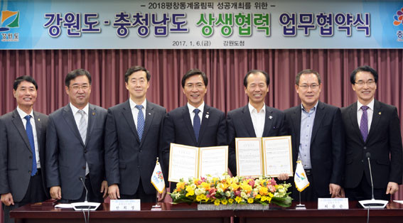 ¾ÈÈñÁ¤ Áö»ç´ÂÁö³ 1¿ù 6ÀÏ °¿øµµÃ» ¼ÒȸÀǽǿ¡¼ ÃÖ¹®¼ø °¿øµµÁö»ç¿Í ¡®2018Æò⵿°è¿Ã¸²ÇÈ ¼º°ø °³ÃÖ¸¦ À§ÇÑ »ó»ý Çù·Â ¾÷¹«Çù¾à¡¯À» ü°áÇß´Ù.