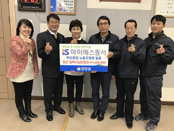 ¾ÆÀÌ¿¡½ºµ¿¼ ¾Æ»ê°øÀå ³ëµ¿Á¶ÇÕ¿øµéÀÌ ÀÚ¹ßÀûÀ¸·Î ±âºÎÇØ Á¶¼ºµÈ ±â±ÝÀ¸·Î ½Ç½ÃÇØ ´õ¿í Àǹ̰¡ ±íÀº À̹ø ÈÄ¿øÀº Áö¿ª»çȸ Ãë¾à°èÃþ Á¶¼Õ°¡Á¤ ±è ¸ð ±º¿¡°Ô ´ëÇеî·Ï±ÝÀ¸·Î ÀåÇÐ±Ý 100¸¸ ¿ø, Àå¾ÖÀΰ¡Á¤ È« ¸ð ¾¾ °¡±¸¿¡°Ô ¿¬Åº 700ÀåÀ» ÈÄ¿øÇß´Ù.
