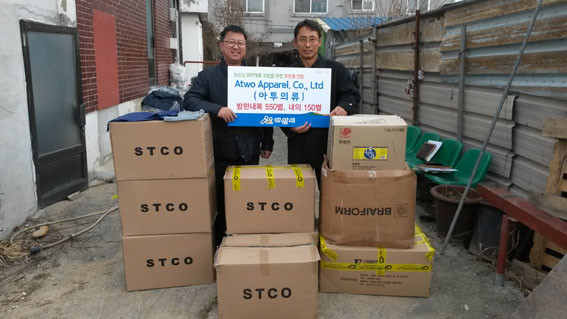 | | ¨Ï ¿Â¾ç½Å¹® | | Atwo Apparel(´ëÇ¥ Á¤Áö±¹)Àº Áö³ 12¿ù 8ÀÏ ¾Æ»ê½Ã(½ÃÀå º¹±â¿Õ)¿¡ µ¿Àý±â Ãë¾à°èÃþ Áö¿øÀ» À§ÇÑ ÈÄ¿øÇ°À» Àü´ÞÇß´Ù.