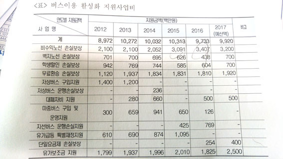 ¾Æ¿ï·¯ 2017³â ½Ã³»¹ö½º ÀçÁ¤Áö¿ø ¿¹»ê¾×Àº ¸íÈ®ÇÑ Ç¥ÁØ¿î¼Û¿ø°¡¸¦ »êÁ¤Çϱâ ÀÌÀü¿¡ Ã¥Á¤µÈ °ÍÀ̱⠶§¹®¿¡, ´ÜÁö ±Ù°Å°¡ ¾ø´Â ¿¹»ê¾×ÀÏ »ÓÀ̶ó¸ç À̹ø¿¡ ¾Æ»ê½Ã¿¡¼ óÀ½ ½ÃµµÇÑ Ç¥ÁØ¿î¼Û¿ø°¡¿¡ µû¶ó ¿¹»óÇÑ ¿î¼Û¾÷ü ¿î¼Û¼ÕÀÍ±Ý ¹üÀ§³»¿¡¼ º¸Á¶±ÝÀÌ ÁýÇàµÅ¾ß ÇÒ °ÍÀ̸ç, ÀÌ ¶ÇÇÑ À§¿¡¼ Á¦½ÃÇÑ °Íó·³ Â÷°¨µÅ¾ß ¸¶¶¥ÇÏ´Ù°í ¹àÇû´Ù.