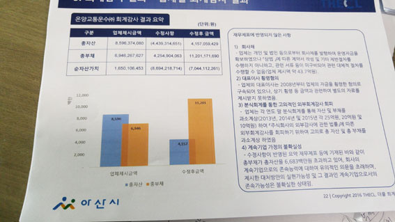 ¾Æ»ê½Ã¹Î¿¬´ë´Â ¡°±Ý¹ø ȸ°è°¨»ç´Â ¡®Àǰ߰ÅÀý¡¯ ¼öÁØÀ̾úÁö¸¸ Ç¥ÁØ¿î¼Û¿ø°¡ »êÁ¤ÀÇ ±âÃʸ¦ ¸¸µé±â À§ÇØ ¾÷üÀÇ ¾ûÅ͸® À繫Á¦Ç¥¸¦ ´Þ·¡°¡¸ç º¸Á¤Çß´Ù°í ÇÑ´Ù. ȸ°è°¨»ç °á°ú¸¦ º¸¸é, ¿Â¾ç±³ÅëÀº ¾÷üÁ¦½ÃÇÑ ¼øÀڻ갡ġ°¡ 16¾ï 5õ10¸¸ 6õ453¿øÀ̾úÁö¸¸ ¼öÁ¤ÈÄ ±Ý¾×Àº 7¾ï 4õ411¸¸ 2õ261¿øÀ¸·Î °è¼Ó±â¾÷À¸·Î¼ÀÇ Á¸¼Ó°¡´É¼ºÀÌ ºÒÈ®½ÇÇÑ »óÅ¡±¶ó°í ÁöÀûÇß´Ù.