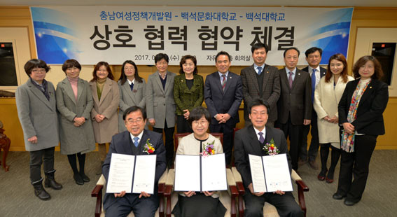 À̹ø Çù¾àÀº °¢ ±â°ü °£ ¿¬±¸ ¹× ±³À°Çù·Â, Á¤º¸±³·ù µî »óÈ£Çù·Âü°è ±¸ÃàÀ» ¸ñÀûÀ¸·Î ¹é¼®¹®È´ëÇб³ ÀåÁ¾Çö ÃÑÀå, ¹é¼®´ëÇб³ ÃÖ°©Á¾ ÃÑÀå, °±âÁ¤ Æò»ý±³À°¿øÀåÀÌ Âü¼®ÇÑ °¡¿îµ¥ ÁøÇàµÇ¾ú´Ù.
