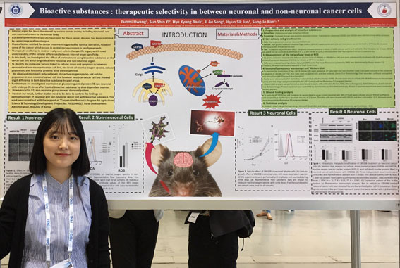 ȲÀº¹Ì ÇлýÀº ÇöÀç Á¹¾÷À» ¾ÕµÐ ÇкΠ4Çгâ ÀçÇÐ ÁßÀ¸·Î, 3Çгâ 1ÇбâºÎÅÍ ¿¬±¸ÇÑ Ãµ¿¬¹° À¯·¡ »ý¸®È°¼º¼ÒÀç ÃßÃâ¹°À» Ȱ¿ëÇØ ½Å°æ¾ÏÁ¾¿¡ ´ëÇÑ ¾Ï¼¼Æ÷ Áõ½Ä ¾ïÁ¦È¿°ú¸¦ °ËÁõÇß´Ù.