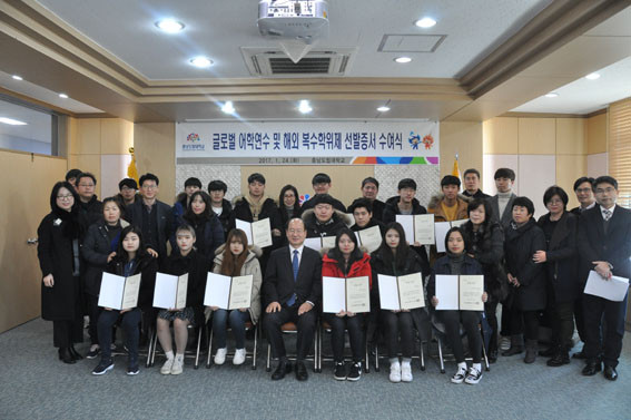 | | ¨Ï ¿Â¾ç½Å¹® | | Ãæ³²µµ¸³´ëÇб³(ÃÑÀå ±¸º»Ãæ)°¡ 1¿ù 24ÀÏ ´ëȸÀǽǿ¡¼ 2016Çг⵵ µ¿°è ±Û·Î¹ú ¾îÇп¬¼ö ¼±¹ßÁõ¼ ¼ö¿©½Ä°ú 2017³â ÇØ¿Ü º¹¼öÇÐÀ§Á¦ ÀÔÇм³¸íȸ¸¦ °³ÃÖÇß´Ù.