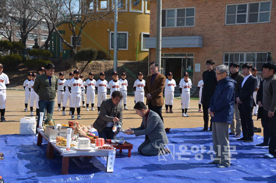 ¿Â¾ç¿ÂõÃʵîÇб³(±³Àå ÀÓ¿ë±Ô)´Â Áö³ 3¿ù 4ÀÏ ¿ÀÀü ÀÌ Çб³ ¾ß±¸Àå¿¡¼ 2017Çг⵵ ¾ß±¸ºÎÀÇ °Ç½Â°ú ¾ÈÀüÀ» ±â¿øÇÏ´Â ±â½ÂÁ¦¸¦ °¡Á³´Ù.