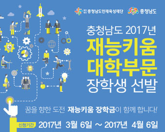 Àç´ÉŰ¿ò ÀåÇлý¿¡°Ô´Â 2³â°£ 3ȸ¿¡ ³ª´©¾î 150¸¸ ¿ø¾¿ ÃÑ 450¸¸ ¿øÀÌ Áö±ÞµÇ¸ç, Ãæ³²ÀÎÀç ÀåÇлý Ä·ÇÁ Ȱµ¿¿¡ Âü¿©ÇÒ ¼ö ÀÖ´Â ±âȸµµ Á¦°øµÈ´Ù.