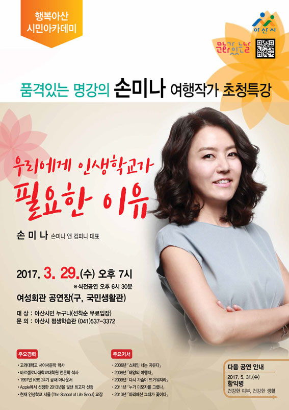 ¾Æ»ê½Ã Æò»ýÇнÀ°ü(°üÀå ±è¿ÀÁ÷)¿¡¼´Â ¿À´Â 3¿ù 29ÀÏ ¿ÀÈÄ 7½Ã ¿©¼ºÈ¸°ü °ø¿¬Àå¿¡¼ Àü KBS ´ëÇ¥ ¾Æ³ª¿î¼¿´´ø ¼Õ¹Ì³ª °»ç¸¦ ÃÊÃ»ÇØ ¡®¿ì¸®¿¡°Ô ÀλýÇб³°¡ ÇÊ¿äÇÑ ÀÌÀ¯¡¯¶ó´Â ÁÖÁ¦·Î Çູ¾Æ»ê ½Ã¹Î¾ÆÄ«µ¥¹Ì¸¦ °³ÃÖÇÑ´Ù.