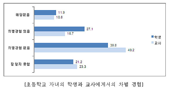 | | ¨Ï ¿Â¾ç½Å¹® | | ¸ÕÀú ÃʵîÇлý ÀÚ³àÀÇ °æ¿ì, Çлýµé °£ÀÇ Â÷º°°æÇèÀÌ ÀÖ¾ú´Ù´Â ÀÀ´äÀº ÀüüÀÇ 27.1%, ±³»ç¿¡°Ô¼ Â÷º°°æÇèÀÌ ÀÖ¾ú´Ù´Â ÀÀ´äÀº 16.7%ÀÎ °ÍÀ¸·Î ³ªÅ¸³µ´Ù.