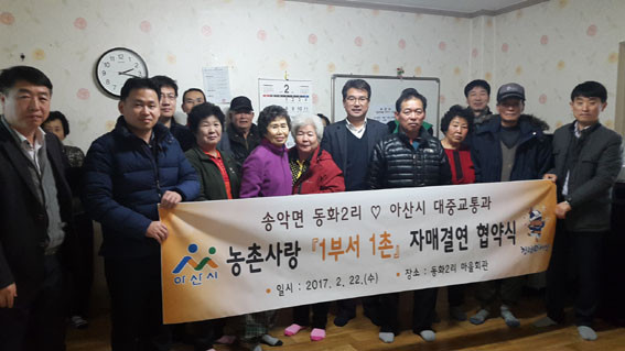 ³ëÀÎȸÀå, ºÎ³àȸÀå, »õ¸¶À»ÁöµµÀÚ¸¦ ºñ·ÔÇÑ ¸¶À»Áֹΰú ´ëÁß±³Åë°ú Á÷¿ø µî 30¿©¸íÀÌ Âü¼®ÇÑ À̹ø Çù¾à½ÄÀº ¾Æ»ê½Ã°¡ ÁÖ¿ä½ÃÃ¥À¸·Î ÃßÁøÇϰí ÀÖ´Â ¡®1ºÎ¼ 1ÃÌ ÀڸŰῬ »ç¾÷¡¯ÀÇ ÀÏȯÀ¸·Î 2017³â ´ëÁß±³Åë°ú°¡ ½Å¼³µÇ¸é¼ ÃßÁøµÆ´Ù.