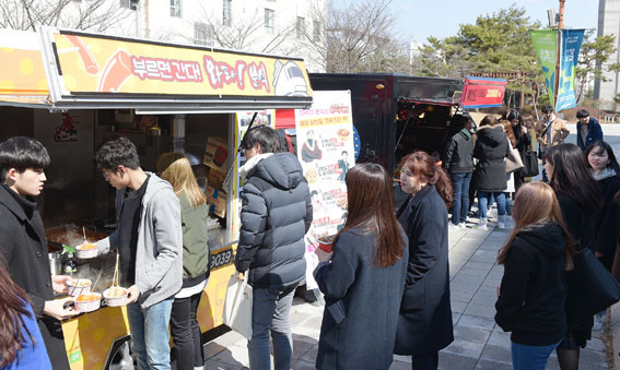 Áö³ 2¿ù 27ÀÏ ÀÔÇнÄÀ» ½ÃÀÛÀ¸·Î ¿À´Â 3ÀϱîÁö ÁøÇàµÇ´Â »õ³»±â ¿À¸®¿£Å×ÀÌ¼Ç ±â°£¿¡ ÇлýµéÀÇ ÆíÀǸ¦ Á¦°øÇϱâ À§ÇØ ¼³Ä¡ÇÑ 5´ëÀÇ ÇªµåÆ®·°ÀÌ ¿î¿µµÇ¸é¼ ´ëÇÐÃøÀÇ ¼¼½ÉÇÑ ¹è·Á¿¡ ÇлýµéÀÌ ÀÇ¿ÜÀÇ ¹ÝÀÀÀ» º¸À̰í ÀÖ´Ù.