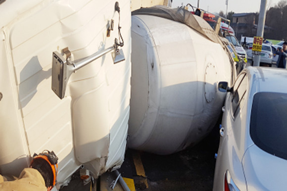 ¾îÁ¦ ¿ÀÈÄ 17½Ã 39ºÐ°æ Ãæ¹«±³ ´Ù¸® À§¿¡¼ û¼Ò³â ±³À°¹®È ¹æÇâ¿¡¼ µÐÆ÷ ¹æÇâÀ¸·Î ÁÂȸÀü ÇÏ´ø ·¹¹ÌÄÜ Â÷·®ÀÌ ±Þ Á¶ÀÛ¿¡ ÀÇÇØ ÀÚü ¹«°Ô¸¦ À̱âÁö ¸ñÇÏ°í ¿ìÃøÀ¸·Î ±â¿ï¸ç ±â´ë·Î Àüº¹µÇ´Â »ç°í°¡ ¹ß»ý Çß´Ù.