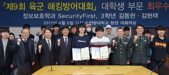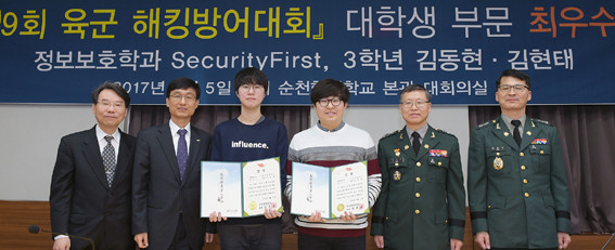 ¼øÃµÇâ´ëÇб³(ÃÑÀå ¼±³ÀÏ)´Â ºÏÇÑÀÇ »çÀ̹ö À§ÇùÀÌ °íÁ¶µÇ´Â °¡¿îµ¥ ¡®2017³â À°±º ÇØÅ·¹æ¾î´ëȸ¡¯¿¡ Âü°¡ÇØ ´ëÇлý ºÎ¹®¿¡¼ Á¤º¸º¸È£Çаú µ¿¾Æ¸® ¡®½ÃÅ¥¸®Æ¼ÆÛ½ºÆ®¡¯¿¡¼ Ȱµ¿ÇÏ´Â 3Çг⠱赿Çö(22)¡¤±èÇöÅÂ(23) ÇлýÀÌ ÃÖ¿ì¼ö»óÀÎ À°±ºÂü¸ðÃÑÀå»óÀ» ¼ö»óÇß´Ù°í ¹àÇû´Ù.