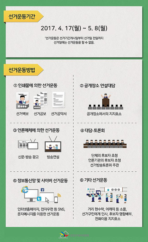 ¡æ °ø½ÄÀûÀÎ ¼±°Å¿îµ¿±â°£Àº 4¿ù 17ÀϺÎÅÍ ¼±°ÅÀÏ ÀüÀÏÀÎ 5¿ù 8ÀϱîÁöÀÔ´Ï´Ù.
