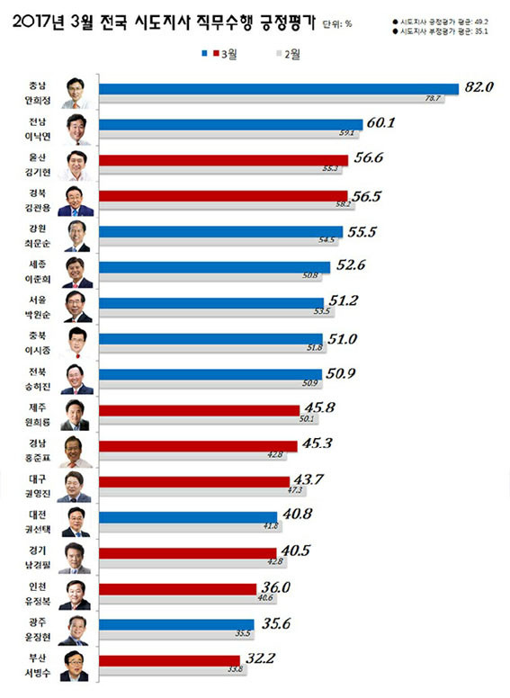 ¸®¾ó¹ÌÅÍ 2017³â 3¿ù ¿ù°£ Á¤·Ê ±¤¿ªÀÚÄ¡´Üü Æò°¡ Á¶»ç´Â À¯¼± ÀÓÀÇÀüȰɱâ(RDD, random digit dialing) ÀÚµ¿ÀÀ´ä(IVR, interactive voice response) ¹æ½ÄÀ¸·Î 2017³â 3¿ù 31ÀϺÎÅÍ 4¿ù 2ÀϱîÁö 3Àϰ£ Àü±¹ 19¼¼ ÀÌ»ó ½Ãµµ ÁֹΠ8õ500¸í(½Ãµµº° 500¸í)À» ´ë»óÀ¸·Î ½Ç½ÃÇß´Ù.