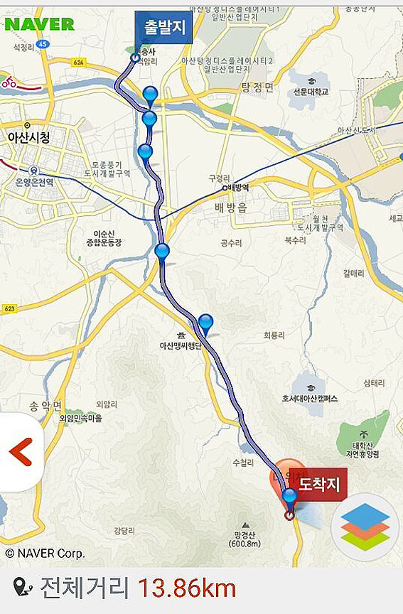ÇöÃæ»ç¸¦ Ãâ¹ßÇØ °î±³ÃµÀ» °Ç³Í ÈÄ ½Åµ¿ ¿Â¾çõº¯ ±æÀ» µû¶ó ¼³È»ê ¾Æ·¡ °¨ÅÃÀ̸¶À»À» Áö³ µÚ, ´ë·« Áö¹æµµ 623È£¸¦ µû¶ó ¾Æ»ê°ú õ¾ÈÀÇ °æ°èÀÎ ³ÒƼ°í°³±îÁö °¡´Â ÀÌ ±æÀº ¾à 14kmÀÇ ±æ·Î¼ Å« ±¼°îÀº ¾øÁö¸¸ ¸·ÆÇ ³ÒƼ°í°³¸¦ ¿À¸£´Â °úÁ¤Àº Ãæ¹«°ø À̼ø½Å À屺ÀÇ ¹«°Å¿î ¹ß°ÉÀ½ ¸¸ÅÀ̳ª °í´ÞÇÁ´Ù.