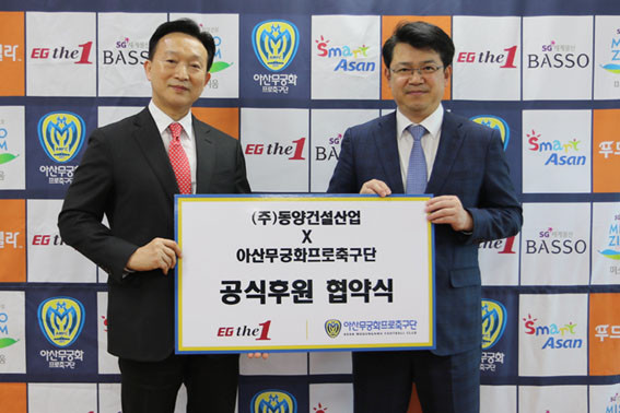 ¾Æ»ê¹«±ÃÈ´Â Áö³ 3¿ù 23ÀÏ ¿ÀÈÄ 5½Ã ¾Æ»ê½Ãû ±¸´ÜÁÖ Áý¹«½Ç¿¡¼ µ¿¾ç°Ç¼³»ê¾÷°ú ÆÄ°ÝÀûÀÎ ±Ý¾×ÀÇ ±¤°í ÈÄ¿øÀ» 2019³â ±îÁö 3³â °£ ¹Þ±â·Î ¾à¼ÓÇϸç Çù¾àÀ» ü°áÇß´Ù.