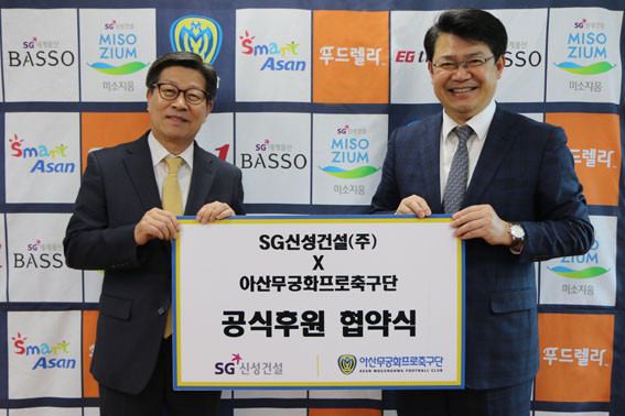 ¾Æ»ê¹«±ÃÈ´Â, Áö³ 3¿ù 24ÀÏ ¾Æ»ê½Ãû ±¸´ÜÁÖÀÇ Áý¹«½Ç¿¡¼ SG½Å¼º°Ç¼³·ÎºÎÅÍ 2017³â ÇÑ ÇØ µ¿¾È ÈÄ¿ø±ÝÀ» ¹Þ±â·Î ¾à¼ÓÇϸç Çù¾àÀ» ü°áÇß´Ù.