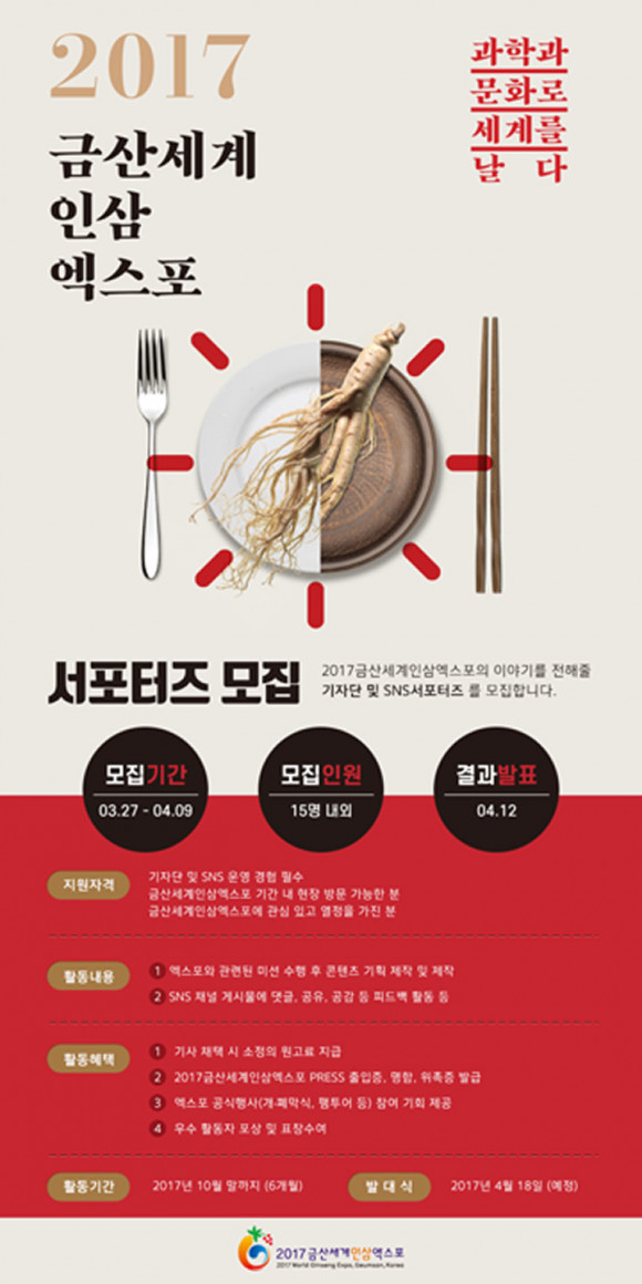 ½ÅûÀº ±Ý»ê¼¼°èÀ묽ºÆ÷ ȨÆäÀÌÁö(http://insamexpo.or.kr) °øÁö»çÇ׿¡ ¸µÅ©µÈ ÁÖ¼Ò·Î Á¢¼ÓÇÏ¿© ¿Â¶óÀÎ Á¢¼ö¸¦ ÇÏ¸é µÈ´Ù. (¹®ÀÇ : Á¶Á÷À§ È«º¸ÆÀ ¢Ï041-750-0724)