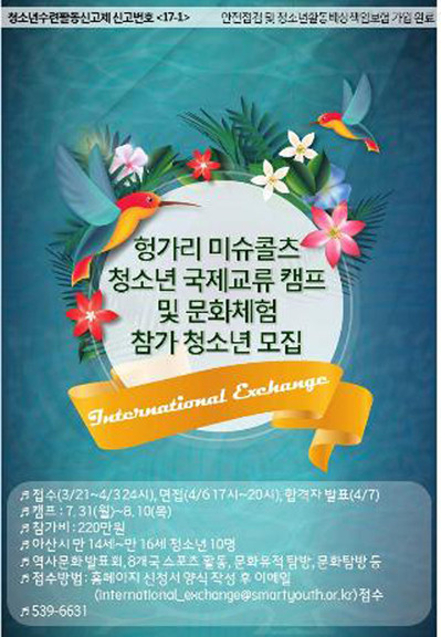 ½ÅûÀº ¾Æ»ê½Ã °ÅÁÖ ¸¸ 14~16¼¼(8¿ù 10ÀÏ ±âÁØ) û¼Ò³âÀÌ´Ù. Âü°¡¸¦ Èñ¸ÁÇϴ û¼Ò³âÀº 4¿ù 3ÀϱîÁö ȨÆäÀÌÁö(www.smartyouth.or.kr) ¸ðÁý¾È³» °Ô½ÃÆÇ¿¡¼ ½Åû¼¸¦ ³»·Á¹Þ¾Æ ÀÛ¼ºÇÏ¿© À̸ÞÀÏ(international_exchange@smartyouth.or.kr)·Î º¸³»°í ¸éÁ¢À» ÅëÇØ ÃÖÁ¾ ÀοøÀ» ¼±¹ßÇÑ´Ù. ÀÚ¼¼ÇÑ »çÇ×Àº ȨÆäÀÌÁö °øÁö»çÇ×À» Âü°íÇÏ¸é µÈ´Ù.