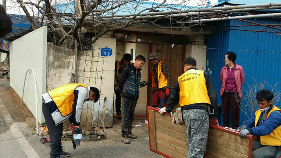 À½ºÀ¸é Áö¿ª»çȸº¸ÀåÇùÀÇü(ÇູŰ¿òÃßÁø´Ü)ÀÇ ¿äûÀ¸·Î 88ÀÚ¿øºÀ»ç´ëÀÇ Àç´É±âºÎ¸¦ ÅëÇØ ½Ç½ÃµÈ À̹ø ÁÖ°Åȯ°æ°³¼± ¼ºñ½º´Â µ¶°Å³ëÀÎ ±è ¸ð(80¼¼¡¤¿©) ¾î¸£½ÅÀÇ ¾²·¯Á®°¡´Â ´ãÀå ±³Ã¼¿Í ³°Àº ö ´ë¹®À» Á÷Á¢ Á¦ÀÛ¡¤¼³Ä¡ÇØ ÁÖ¾ú´Ù.