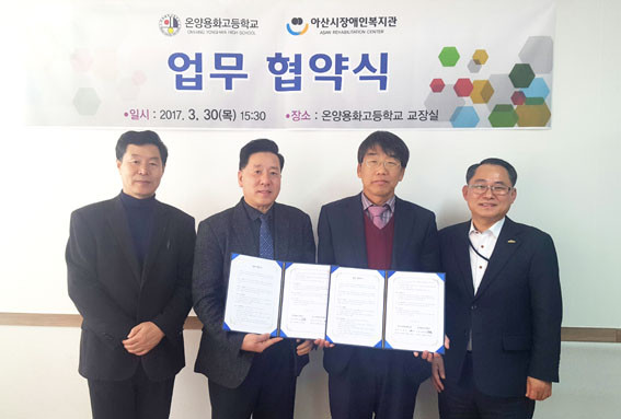 À̳¯ ¿Â¾ç¿ëȰíµîÇб³ ¹®µ¿ÁØ ±³ÀåÀº ¡°À̹ø Çù¾àÀ» °è±â·Î Áö¿ª»çȸ Àå¾ÖÇлýÀÇ Áø·Î ¹× Á÷¾÷±³À° ±âȸ È®´ë°¡ ÀÌ·ç¾îÁö±æ ¹Ù¶õ´Ù.¡±¸ç ¡°¾ÕÀ¸·Î »óÈ£ Àû±ØÀûÀÎ Çù·ÂÀ¸·Î Àå¾ÖÇлýÀÇ ÀÚ¸³ ¹× Ãë¾÷À» ÅëÇÑ »çȸÂü¿©¿¡ ±â¿©ÇÒ ¼ö ÀÖµµ·Ï Áö¼ÓÀûÀÎ °ü½É°ú ³ë·ÂÀ» ±â¿ïÀ̰ڴÙ.¡±°í ÀüÇß´Ù.