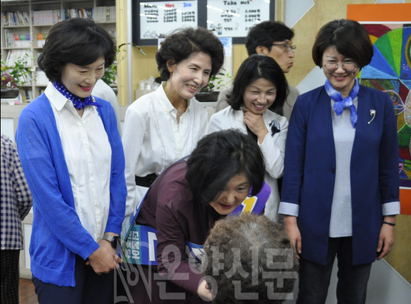 | | ¡è¡è ´õºÒ¾î¹ÎÁÖ´ç ¹®ÀçÀÎ ´ë¼±Èĺ¸ÀÇ ºÎÀÎ ±èÁ¤¼÷ ¿©»ç°¡ ¾Æ»êÀ» ¹æ¹®ÇØ, ¾Æ»ê½Ã¹ÎµéÀÇ Ç¥½ÉÀâ±â¿¡ ³ª¼¹´Ù. | ¨Ï ¿Â¾ç½Å¹® | |