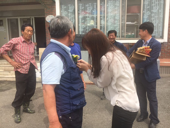 ¼±¿ì¹® È«º¸´ã´ç°ü ¹× Á÷¿ø 10¿©¸íÀº ¹é¾Ï2¸® ¸¶À»È¸°ü¿¡ ¿À½Å ¾î¸£½Åµé 30¿©¸í¿¡°Ô Ä«³×À̼ÇÀ» ´Þ¾Æµå¸®°í, È¿ÀÚ¼ÕÀ» ³ª´©¾î µå·È´Ù. ¶ÇÇÑ ÀûÀûÇÑ ¸¶À½À» ´Þ·¡ÁÖ±â À§ÇØ ´ãȸ¦ ³ª´©¸ç µû¶æÇÑ ½Ã°£À» º¸³Â´Ù.