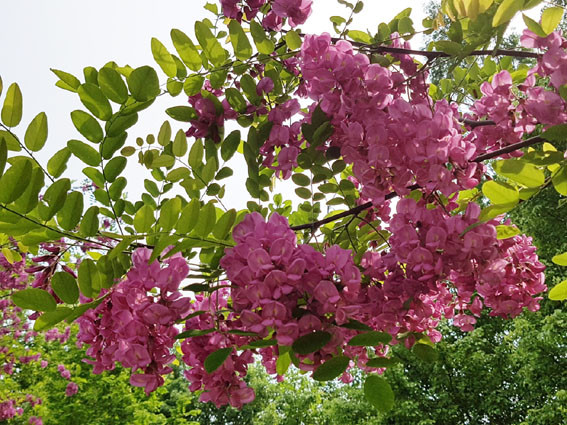 ÀÌÆË³ª¹« ±æÀ» µû¶ó »ê¸²¹Ú¹°°ü µÚÆí »êÃ¥·Î¿¡ µé¾î¼¸é ÀϹÝÀûÀ¸·Î Á»Ã³·³ º¸±â Èûµç ºÓÀº»ö ¾ÆÄ«½Ã ³ª¹« ²ÉÀÌ ¸¸°³ÇØ ÀÖ´Ù. ºÓÀº ¾ÆÄ«½Ã´Â ¹Ì±¹ ¾ÆÄ«½Ã¸¦ ½ºÆäÀο¡¼ °ü»ó¿ëÀ¸·Î °³·®ÇÑ Ç°Á¾À¸·Î, ¿Âµµ¸¸ ³ôÀ¸¸é ¿¬Áß ²ÉÀ» ÇÇ¿ì´Âµ¥, ¿ì¸®³ª¶ó¿¡¼´Â 5¿ù°ú 7¿ù ¸¸°³ÇÑ´Ù.