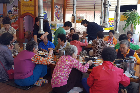 À̹ø Çà»ç¿¡´Â °ü³» µ¶°Å³ëÀÎ, Àå¾ÖÀÎ µî ¼Ò¿Ü°èÃþ ¾î¸£½Å 40¿©¸íÀ» ÃÊ´ëÇÑ °¡¿îµ¥ °¥ºñÀ屺 ½Ä´ç(´ëÇ¥ ÃÖÀ¯Á¤, ½Ç¿Áµ¿ ¼ÒÀç)°ú ÃÌÀå°ñ ½Ä´ç(´ëÇ¥ ±èÁ¤ÇÐ, ¹æÃൿ ¼ÒÀç)ÀÇ ÈÄ¿øÀ¸·Î Á¡½É½Ä»ç¸¦ ´ëÁ¢Çϰí, ÇູŰ¿òÃßÁø´Ü¿¡¼ ¸¶·ÃÇÑ ¼±¹°À» Àü´ÞÇÏ´Â ¼øÀ¸·Î ÁøÇàµÆ´Ù.