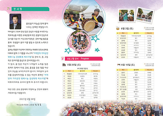 ±èÁØÇ¥ ±³À°ÀåÀº ¡°Áö¿ª¿¬°è °Å¸®°ø¿¬ Çູ³ª´® °¨¼ºÅåÅå Æä½ºÆ¼¹úÀ» ÅëÇØ ÇлýµéÀÇ ²Þ°ú ³¢, °¨¼ºÀ» »ì¸®°í ÇлýÀÇ »îÀ» À§ÇÑ ¿¹¼ú±³À°À¸·Î ÀÚ¸®¸Å±èÇϸç, Çлý ¹× ±³Á÷¿ø »Ó¸¸ÀÌ ¾Æ´Ï¶ó ¾Æ»ê½Ã¹Î Àüü°¡ ÇѸ¶À½À¸·Î Àü±¹¼Ò³âüÀüÀÇ ¼º°øÀ» ±â¿øÇÏ´Â ÈÇÕÀÇ ÀåÀÌ µÇ±â¸¦ ¹Ù¶õ´Ù.¡±°í ¸»Çß´Ù.