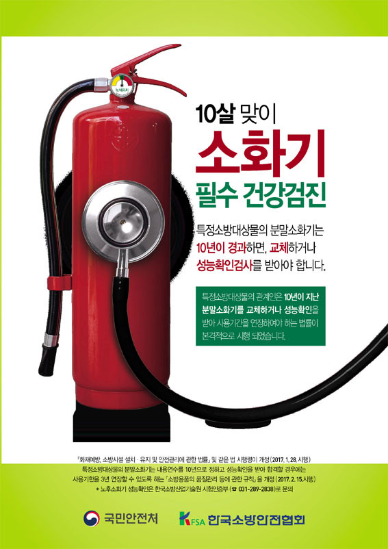 ¼Ò¹æ¼¿¡ µû¸£¸é Áö³ 2017³â 1¿ù ÈÀ翹¹æ, ¼Ò¹æ½Ã¼³ ¼³Ä¡¡¤À¯Áö ¹× ¾ÈÀü°ü¸®¿¡ °üÇÑ ½ÃÇà·ÉÀÌ °³Á¤µÊ¿¡ µû¶ó ¼ÒȱâÀÇ ³»¿ë¿¬¼ö´Â 10³âÀ¸·Î 2006³â 12¿ù ÀÌÀü¿¡ »ý»êµÈ ¼Òȱâ´Â 2018³â 1¿ù 27ÀϱîÁö ±³Ã¼Çϰųª Çѱ¹¼Ò¹æ»ê¾÷±â¼ú¿ø¿¡ ¼º´É È®ÀÎÀ» ¹Þ¾Æ 3³â ¿¬ÀåÇØ »ç¿ëÇØ¾ß ÇÑ´Ù.